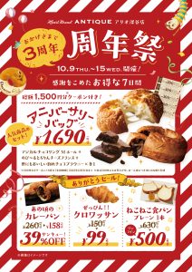 おかげさまでハートブレッドアンティーク アリオ深谷店は今年で3周年を迎えます✨